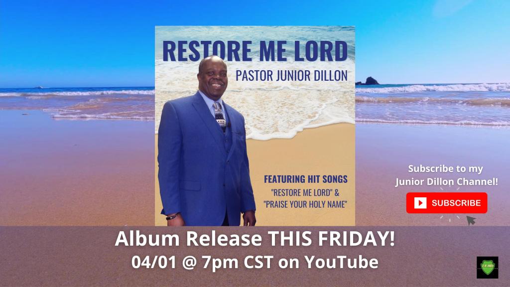 My Music I am so excited to share my music with you! If you love it, please share. Bless up. My new album, Restore Me Lord, is NOW on YouTube! New Music! Check out my new album! Praise Your Holy Name (Lyric Video) — Pastor Junior Dillon & Vin Morgan Restore Me Lord (Lyric Video) — Pastor Junior Dillon, Lead Vocalist Share this: Share on X (Opens in new window) X Share on Facebook (Opens in new window) Facebook Like Loading...
